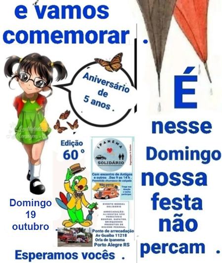 Mais informações pelo telefone/WhatsApp (51) 98111-0067, com Rogério Hübbe, e no Instagram @solidarioipanema