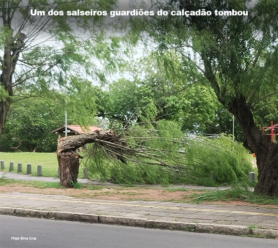 Eram três grandes árvores da espécie Salseiro, ou Salgueiro, localizadas ao lado do calçadão, em frente aos quiosques, no bairro Guarujá.